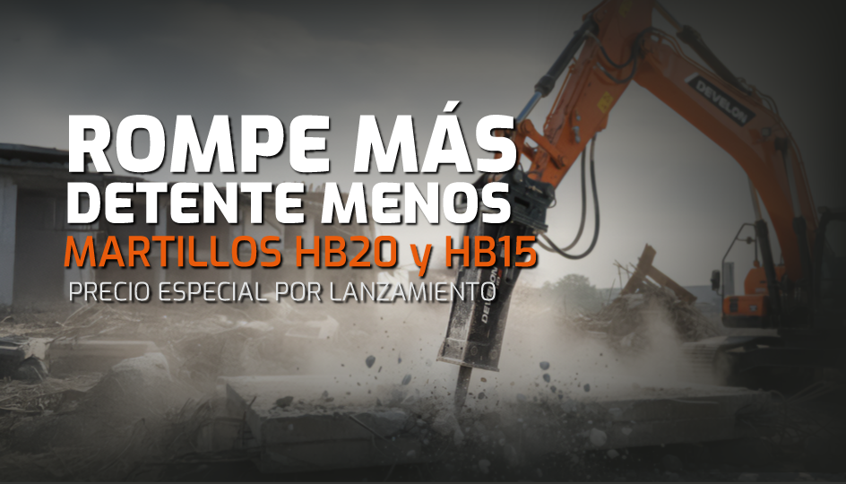 Los martillos hidráulicos DEVELON HB20 y HB15 se encuentran disponibles con precio especial por tiempo limitado, posicionándose como una alternativa más conveniente frente a otras opciones del mercado, sin comprometer potencia ni confiabilidad.